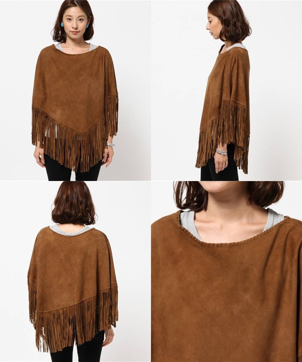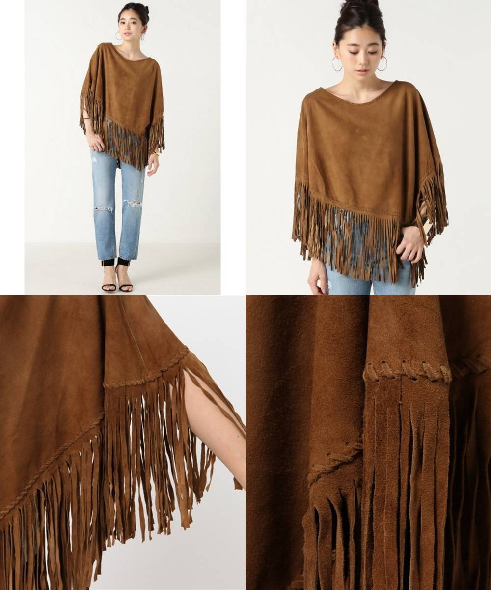 ■商品 :定価6.2万 Deuxieme Classe ドゥーズィエム クラス BUHJAH フリンジ スエード ポンチョ 羊革 レザー ブラウン サイズフリー 91G2904