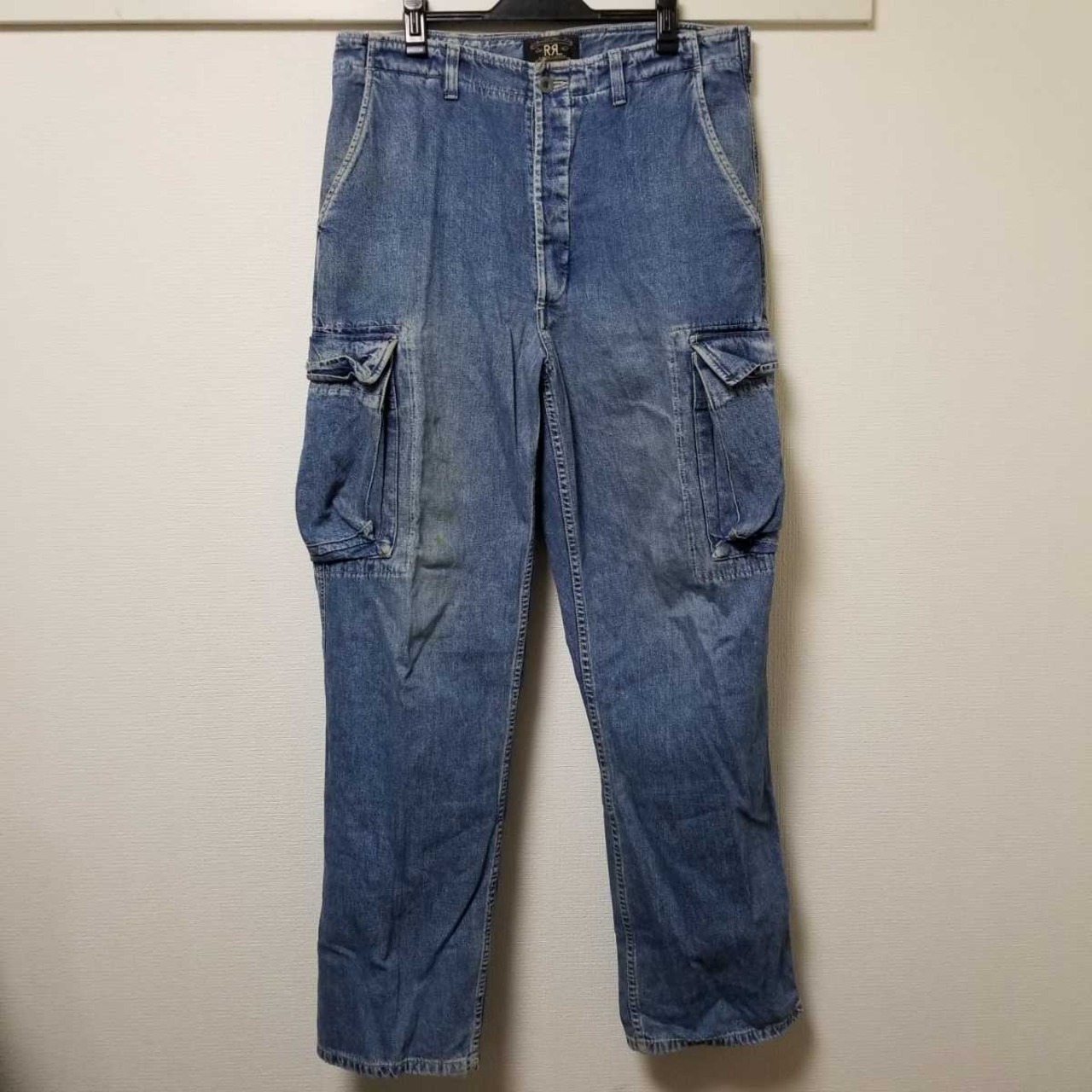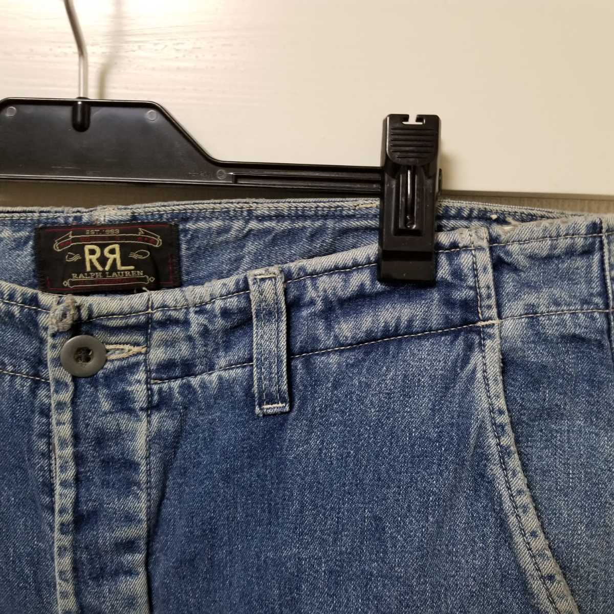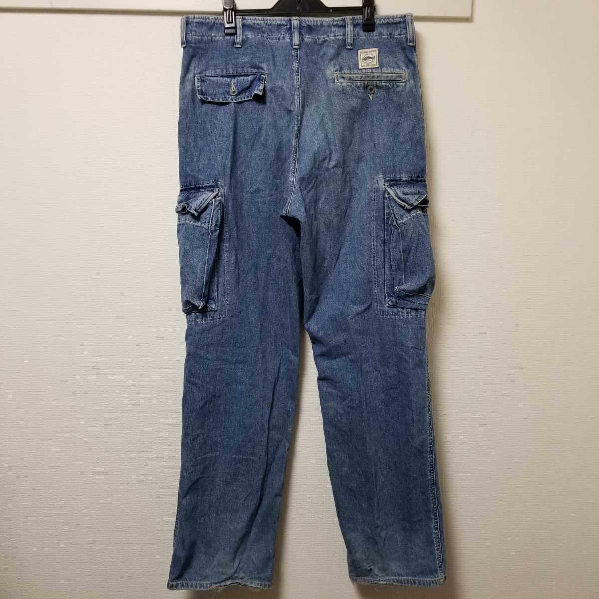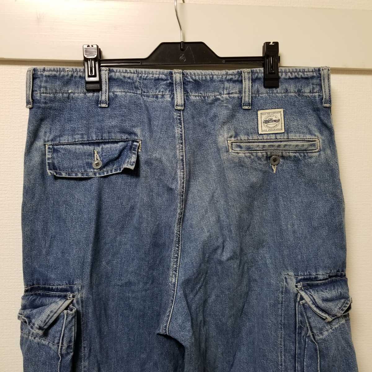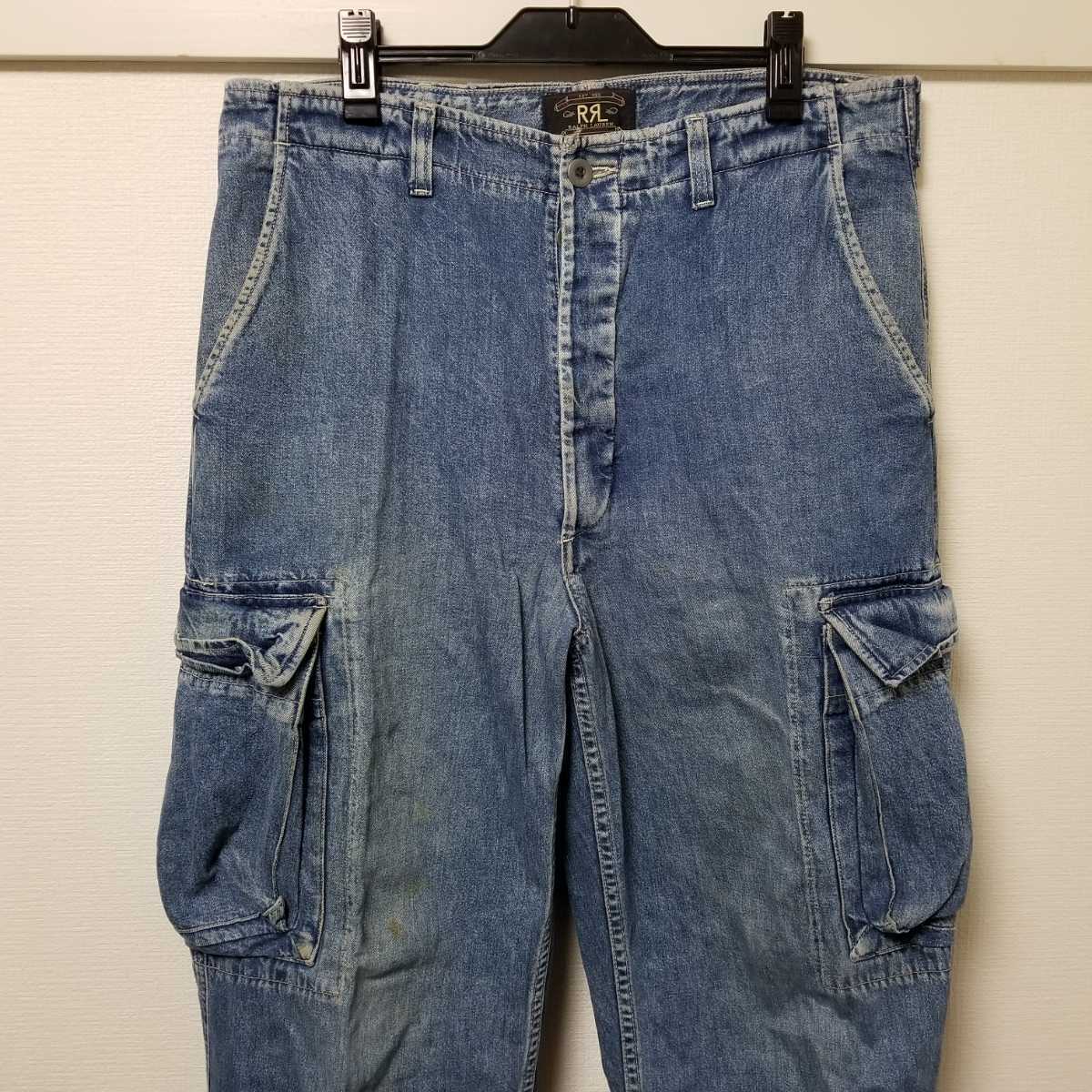 初期 名作 RRL RALPH LAUREN ラルフローレン 三ツ星タグ USA製 加工デニム カーゴパンツ W32大きいサイズ ウエスト90㎝ 02L2207