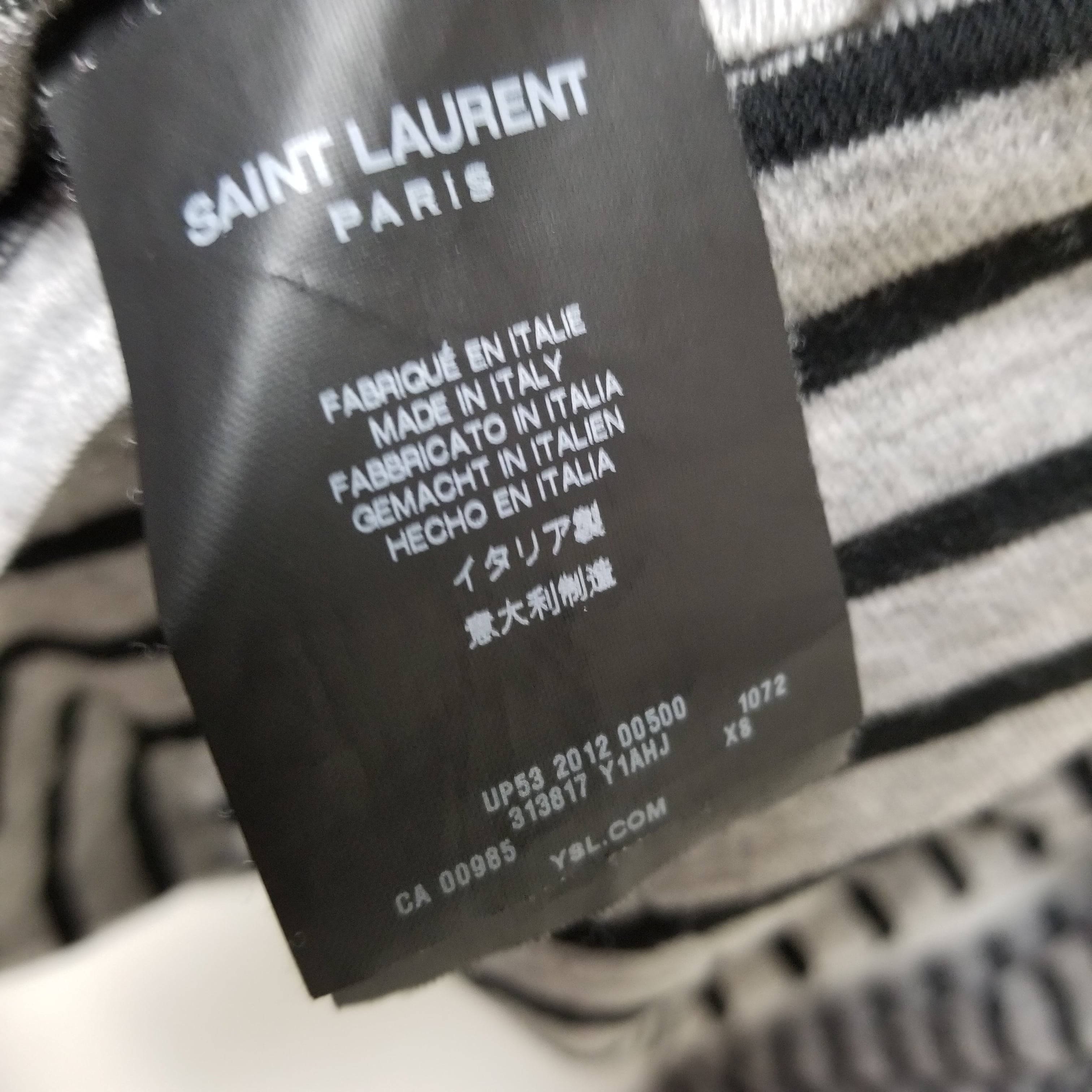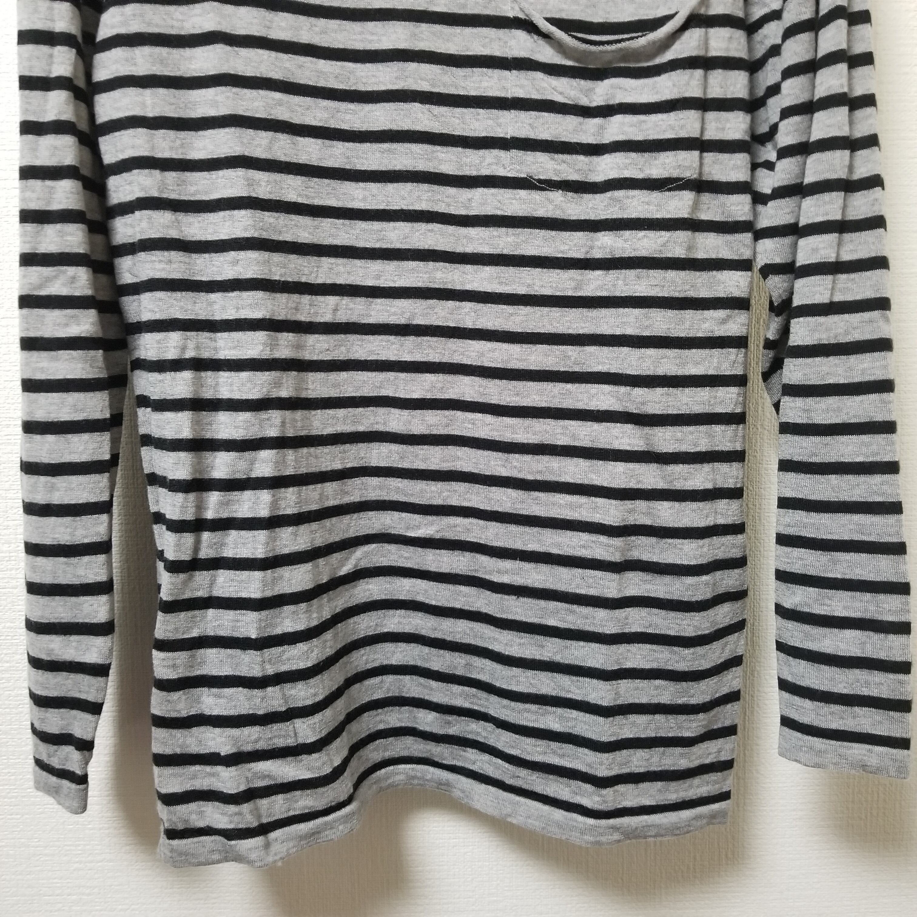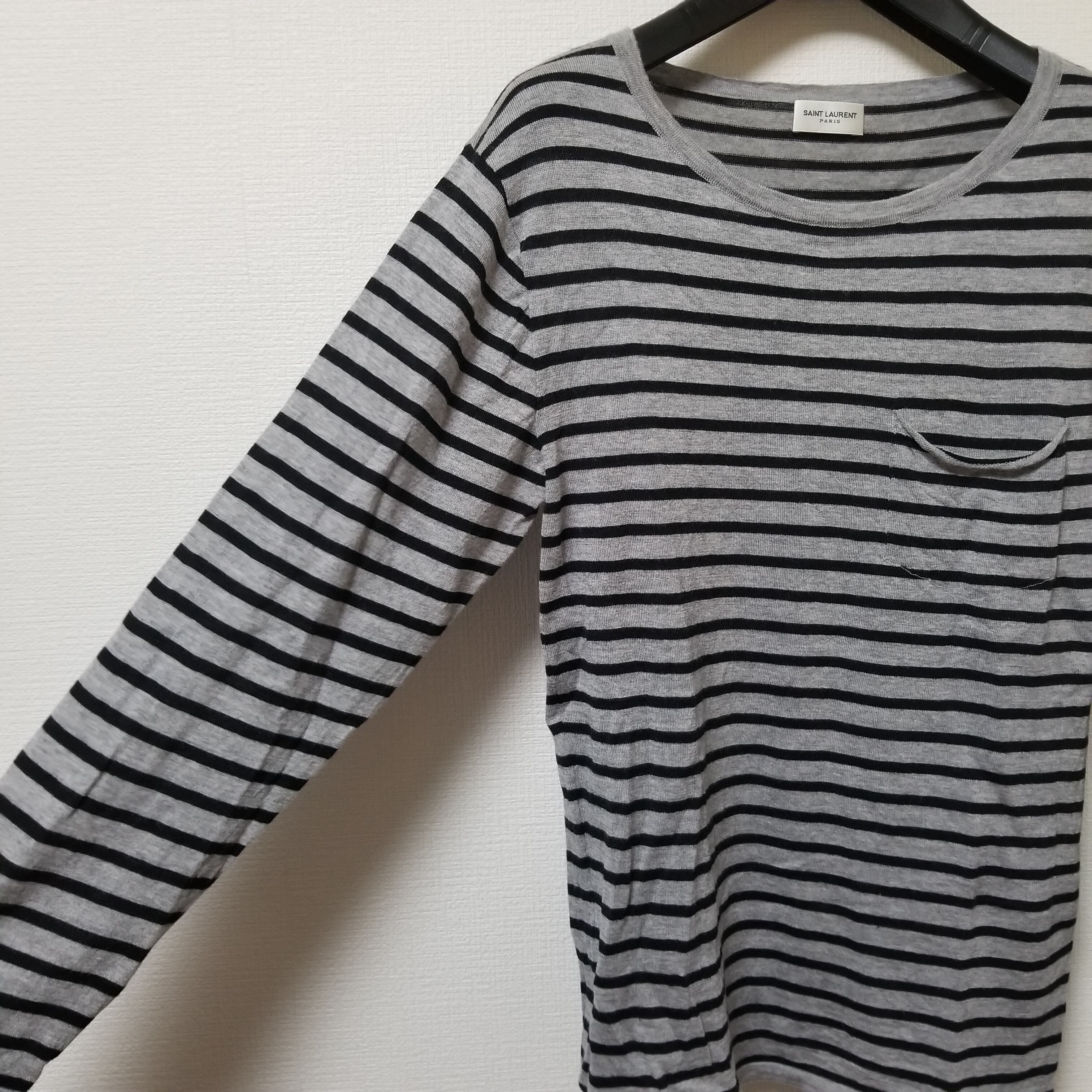 美品◆SAINTLAURENT PARIS サンローラン ポケットデザイン 薄手ウール ボーダー ニット カットソー◆ 着回しに便利なボーダーニットソー♪