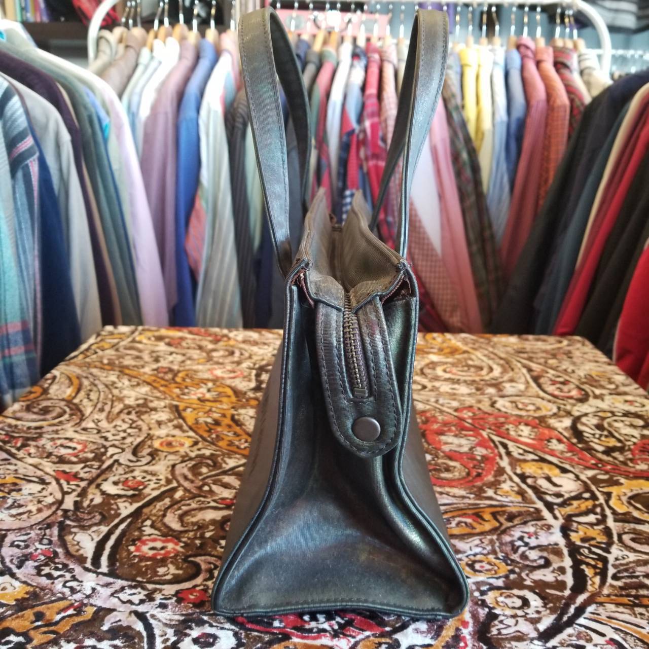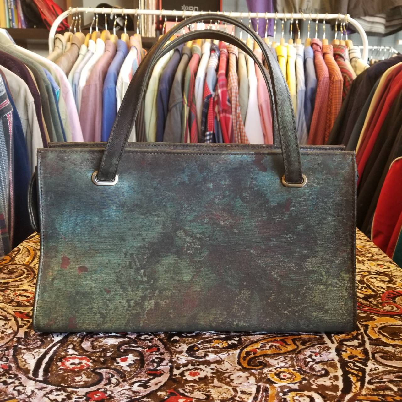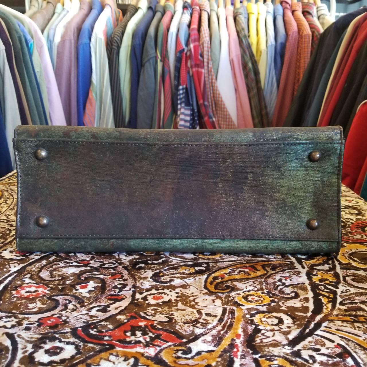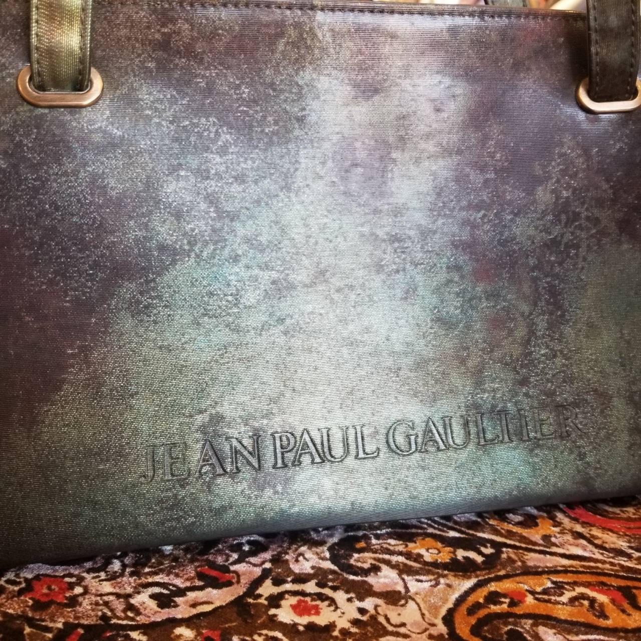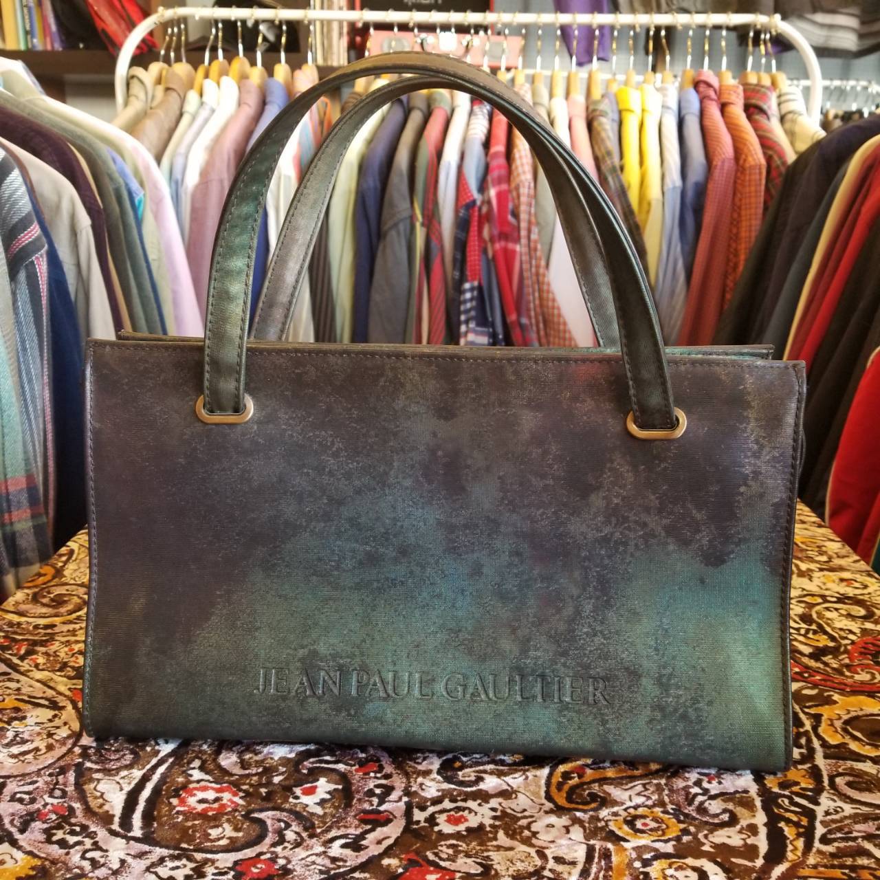 Jean Paul Gaultier V CYBER BAG ¥25000-tax in. ゴルチェが戦前のパリの錆びたトタン屋根の緑青色(vert-de-gris)から着想した柄がこのシリーズ名(ヴェルドグリ サイバー)